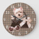 Adorable westie puppy in retro black and white handbag with retro houndstooth background, designed by artist maryline cazenave.
