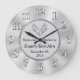 Idées Cadeaux Personnalisées pour l'anniversaire du Mariage. Mariage argenté et gris CLOCKS avec 4 boîtes de texte avec chacun des NOMS du couple, DATE du Mariage et votre message de Mariage spécial. Supprimer tout ou partie du texte. Appelez le concepteur Linda pour le design ou les changements de couleurs ou pour créer un cadeau de mariage personnalisé différent. CALL Designer Linda : 239-949-9090 De merveilleuses et mémorables idées de cadeau de douche pour mariée et couple. Ils adoreront voir leur nom et leur date mariage. Cadeaux de mariage sur le thème de l'argent et cadeaux de décoration de maison mariages gris. Couleurs argentées sous les numéros d'horloge. Voir les instructions ci-dessous si vous souhaitez changer le centre et le texte gris en N'IMPORTE QUELLE COULEUR ou appeler Linda pour obtenir de l'AIDE : 239-949-9090 INSTRUCTIONS sur la modification de la COULEUR du TEXTE ou de la COULEUR ARRIÈRE - PLAN Modifier le TEXTE COULEUR Instructions : CLIQUEZ SUR "Customiser" Bouton pour changer les couleurs et plus d'options personnalisables. Modifier la COULEUR DU TEXTE : Après avoir cliqué sur le BOUTON "Customiser", cliquez sur le TEXTE ou le calque que vous souhaitez modifier (dans la zone "Customiser" à droite de votre produit). Cliquez sur la petite boîte de couleur dans la section "Customiser". Choisissez une nouvelle BOÎTE DE COULEUR et cliquez sur "Terminé". Pour plus de choix de couleurs, cliquez sur la minuscule icône bleue "Eye Dropper Tool Icon" et sélectionnez une autre boîte de couleur ou utilisez l'outil Diapositive ou cliquez sur "Avancé" pour entrer une couleur Pantone HEX # Code Cliquez sur "Terminé". Cliquez sur "Terminé" Modifier les instructions de couleur ARRIÈRE - PLAN : CLIQUEZ sur "Bouton de Personnaliser" si vous n’avez pas encore effectué cette opération. Cliquez sur l'une des minuscules boîtes de couleurs ci-dessous<b>"Couleur Arrière - plan" à votre droite sous la zone "Customisez-le". Pour plus de choix de couleurs, cliquez sur la minuscule icône bleue "Eye Dropper Tool" et sélectionnez une autre boîte de couleur<b>ou utilisez l'outil Diapositive ou cliquez sur "Avancé" pour entrer une couleur Pantone HEX # Code Cliquez sur "Terminé". APPELEZ Linda ou TEXTE pour des commandes spéciales personnalisées ou si vous voulez que je change mes conceptions pour vous ou mettez la conception sur un autre produit. Zazzle.com/LittleLindaPinda* LittleLindaPinda@gmail.com APPEL ou TEXTE Little Linda Pinda : 239-949-9090