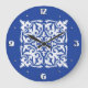 Grande Horloge Ronde Ikat damask pattern - cobalt bleu et blanc