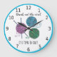Grande Horloge Ronde Il est temps de tricoter - frontière bleue - perso
