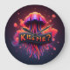Grande Horloge Ronde Illustration de méduse colorée avec Kiss Me Texte
