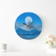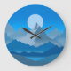 Blue Mountain Peaks Paysage Illustration Horloge Belles Montagnes Rocheuses avec le soleil brillant à l'heure d'or avec des teintes de bleu. Magasinez notre magasin pour plus de décors de maison de montagne sur divers produits pour votre maison de montagne ou de chalet.