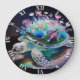 Grande Horloge Ronde Imaginaire Tortue mignonne Fleurs de verre
