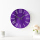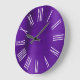 Grande Horloge Ronde Indigo Purple Foil Chiffres romains blancs