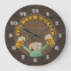 À "It's Beer O'Clock" clock for your man cave, bar or recreation room. A happy cartoon guy is holding up two large cold ones. With dark brown faux texture for a rugged rustic look. The text is customizable.
