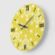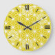 Grande Horloge Ronde Japonais Asanoha motif - moutarde or et blanc