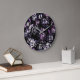 Grande Horloge Ronde Jardin foncé Vis mauve Fleurs de Glam