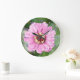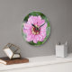 A photographe d'un vol rose, with yellow star shaped flowers in the center. The clock face has purple numbers.