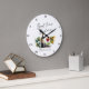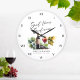 Cette élégante horloge grand format avec noms des jeunes mariés aquarelle et thème vin présente un design aquarelle magnifiquement réalisé représentant un verre à vin et une bouteille, ce qui en fait un cadeau idéal pour toute fête de mariage, anniversaire ou mariage. Cette horloge exquise ajoute une touche de sophistication à n'importe quel espace et sert de souvenir précieux pour le couple heureux. Personnalisez-la avec les noms des jeunes mariés pour créer un cadeau unique et mémorable. Elle est facilement personnalisable.
