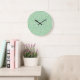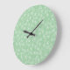 Une jolie horloge ronde, avec un motif de Shamrocks vert clair surligné en blanc, sur un arrière - plan vert clair. Faisant partie de la collection "Shamrocks" Posh & Painterly, ce motif peut être ajusté pour s'adapter à n'importe quelle horloge murale.