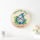 Célébrez l'arrivée de votre petite princesse avec cette horloge de chambre d'enfant, qui présente une adorable goutte de rosée bébé rêvant joyeusement sur un lit de feuilles. Personnalisez avec le nom du bébé et la date de l'événement ou de naissance. La couleur de fond et les polices peuvent également être modifiées selon vos souhaits.