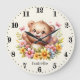 Grande Horloge Ronde Jolie petite fille ours ajouter le nom