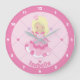 Grande Horloge Ronde Jolie Princesse Rose Personnalisée Filles Chambre
