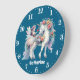 Grande Horloge Ronde Jolies filles imaginaire licorne fée ajouter nom