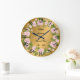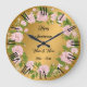 Grande Horloge Ronde Joyeux Anniversaire Rose Dorée Personnalisée