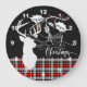Grande Horloge Ronde Joyeux Cerf de Noël - Rouge Plaid