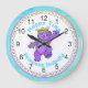 Joyeux moment, Princesse Bear se met à guérir dans la joie. Fanciful couronné princesse ours en peluche pour le plaisir cool. La fourrure violette brillante met en scène des accessoires dont une couronne dorée et une fleur délicate au poignet rose. Une couronne précieuse de bijoux sur princesse fille. Le nom et d'autres textes peuvent être personnalisés à l'aide du modèle fourni. Bordure d'aqua cool avec des chiffres en secondes. Nom et texte personnalisés. C'est le moment pour les filles. Ours en peluche de princesse violette qui danse. Design original par Anura Design Studio.