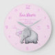 Grande Horloge Ronde Keepsake Baby Girl Birth Stats Elephant Nursery