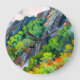 Un paysage vibrant avec une forêt luxuriante sur des falaises de montagne accidentées, bourdonnant de teintes automnales. L'air brumeux se tisse à travers les arbres, créant une atmosphère sereine et rêveuse. Un mélange parfait de couleurs audacieuses et de coups de pinceau expressifs donne vie à la nature.