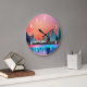 Une horloge avec un design graphique magnifique avec un lac paisible avec des cerfs. et de grands pins se reflétant dans l'eau. Les étoiles planent au-dessus.