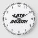 This is a clean and elegant wall clock, white background with black numbers of a simple style..."On thing is, they're running backwards" The perfect joke clock for people who are always running a bit behind ! Objets the texte "Late Again !" dans un style de style font speaks of urgency ! You of course can alter the text to say something else if you wish.