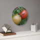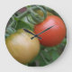 This awesome clock feels a photograph of an orange and a red cherry tomato growing on a tomato plant in a suburban garden. The photograph ce que taken using macro photographiy for a detailed result.