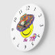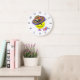 Horloge murale en acrylique ronde de 10,75 po avec une image d'un visage joyeux jaune ensoleillé, une icône les années 70 bien sûr, portant un casquette Disco les années 70 coloré. Voir toute la collection Disco les années 70 Clock dans le DECOR | Section Horloges.