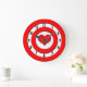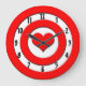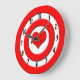 Une cible rouge et blanche avec un coeur rouge à la place du bullseye. Les chiffres noirs sont assis dans le cercle blanc le plus proche du bord de cette amusante horloge murale. Cupidon est sûr de vous mettre en plein coeur avec ce design simple, mais mignon.