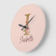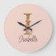 Grande Horloge Ronde Lettre de nom personnalisée I Roses roses blush en
