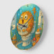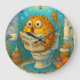 Illustration humoristique de poisson-brousse Lecture dans une salle de bain à thème aquatique Horloge Oeuvre d'art Whimsique d'un poisson-brouillard lisant un journal dans une salle de bain sous-marine bouillonnante, entourée de créatures aquatiques et de décoration, mise en avant sur un design créatif d'horloge, parfait pour les amateurs de décoration unique.