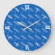Grande Horloge Ronde libellules, bleu pâle sur bleu denim