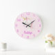 Un fond rose doux orné d'un visage de licorne mignon en blanc et rose. Personnalisez et ajoutez un nom, lettres roses. Chiffres de cadran de montre roses.