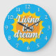 Living the dream wall clock with sunny dial. Cool time clock with inspirational quote. Script typography design with sun rays. Unique gifts for successful colleague, coworker, corporate employee, boss, staff, personnel, business owner, friends, family, wife, husband, grandpa etc. Small and big size options.