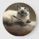 Le temps est super spécial lorsque vous ajoutez cette mignonne horloge murale chaton à votre espace! "Log Lounger" est une peinture qui fait chaud au coeur et qui saisit l'essence d'un après-midi paresseux dans la nature. Au centre de la toile, un jeune chat siamois est confortablement posé sur un épais rond de bois. Ses yeux bleu vif vous regardent sereinement, tandis que sa fourrure molle blanche et brune crée un contraste doux avec la texture du log. Complètement à l'aise et au contenu, ce chaton charmant a trouvé l'endroit parfait pour se détendre et profiter de la beauté de la nature dans un cadre où le temps ralentit et les soucis s'estompent. "Log Lounger" est une célébration des joies simples de la vie, et un rappel de ralentir et d'apprécier la beauté qui nous entoure. Un tableau qui apportera chaleur et confort à tout espace, et qui sera particulièrement apprécié des amoureux de les chats et des amateurs de nature.