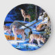 Grande Horloge Ronde Loups en peinture à la neige