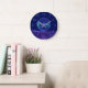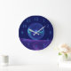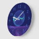 Grande Horloge Ronde Lumineuse Bleu Violet Rêve Abstrait Fractal Art
