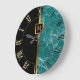 Grande Horloge Ronde Luxe Elégant Marbre Noir Or Moderne