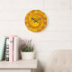 Grande Horloge Ronde Luxe moderne Neon Gold Abstrait Floral Rose