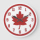 Red and white patriotic Canadian maple leaf design wall clocks.