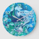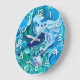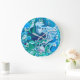 Grande Horloge Ronde Marbre numérique bleu et vert Fluide Art
