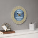 Grande Horloge Ronde Mariage bleu et or Dusty Anniversaire géométrique