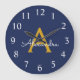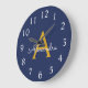 Grande Horloge Ronde Marine Blue Gold Modern Script Girl Monogramme Nom