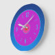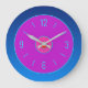 Grande Horloge Ronde Mauve/rose coloré avec cadenas de bordure bleue