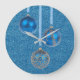 Merry Christmas Blue Glitter Bauble Elegant Wall Clock