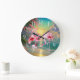 Grande Horloge Ronde mignonne rose flamand amoureux plage maison