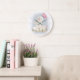 Grande Horloge Ronde Mignons lapin et papillon.