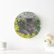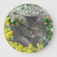 Grande Horloge Ronde Mimosa le chat tigre en Mimosa Fleurs
