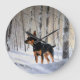 Grande Horloge Ronde Mince Pinscher Laisser Neige Noël