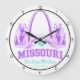Display your Missouri state pride, with this charming wall clock. It features the Show Me State heritage, showcasing the iconic Gateway Arch, surrounded by grizzly bears. An established 1821 gift, celebrating historical significance. This Missouri wall clock, adds timeless Midwestern charm to any home. Perfect for any one.
