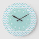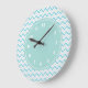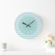 Grande Horloge Ronde Modern Chevron Pattern Girly Aqua Blue